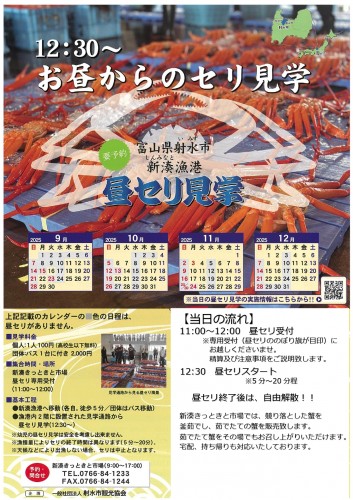 (事前予約制(予約が必要です。)連絡先 TEL 0766-84-1233 新湊きっときと市場)
